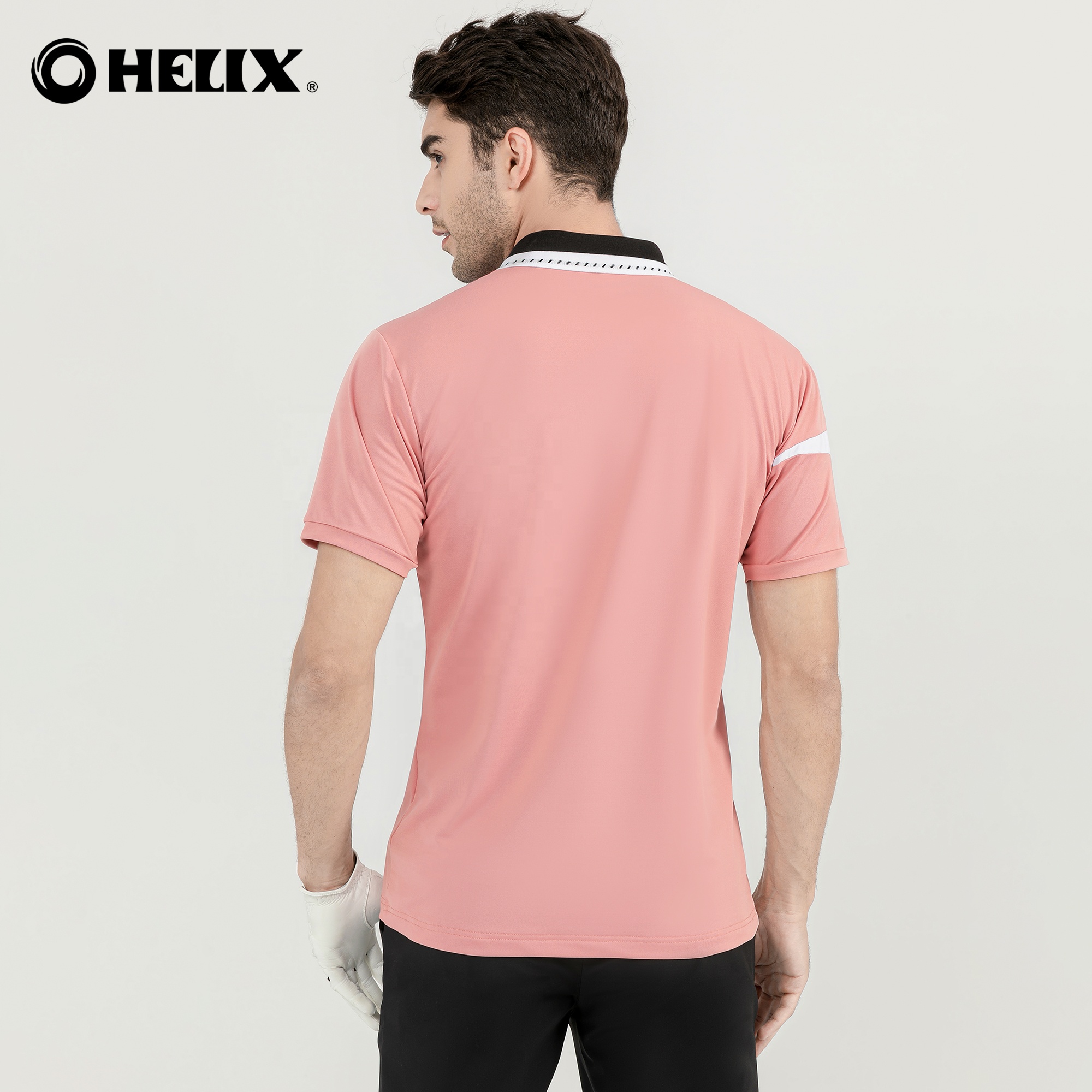 Helix Men's Polo Shirt Quick Dry Performance Short Sleeve Golf Polo Shirt Grayish Blue/pink