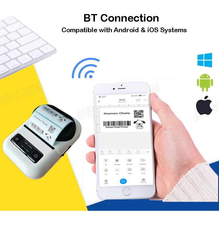 58mm Ios blue Bt tooth wireless thermal mobile sticker mini hand pocket portable label tshirt picture barcode printer