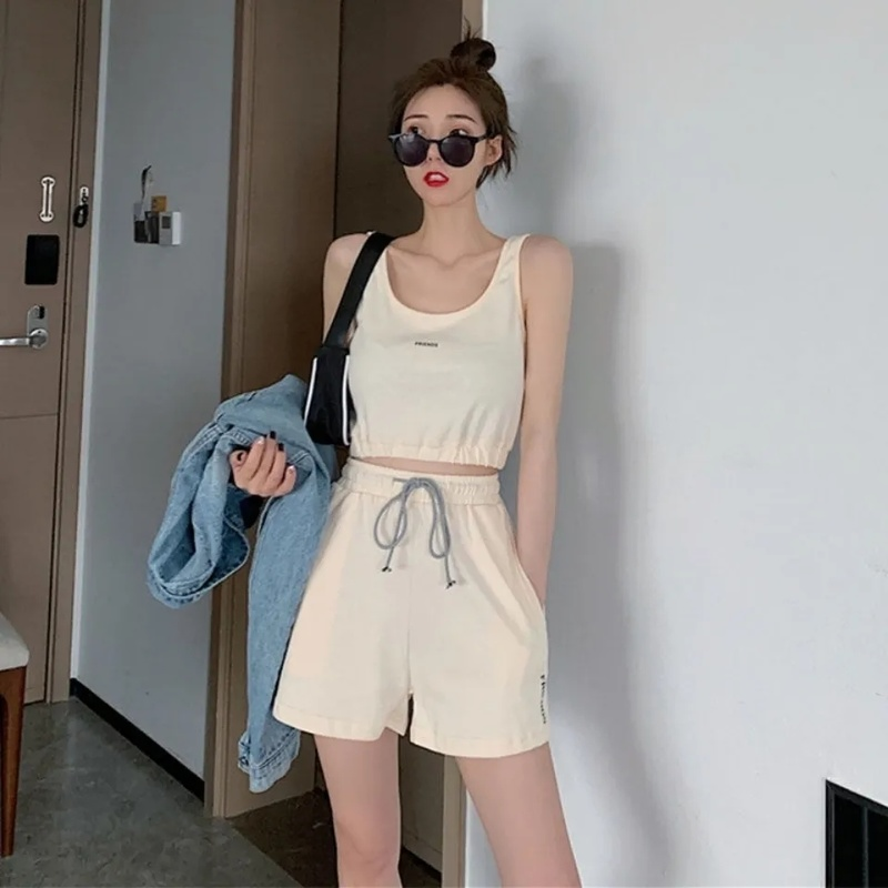 HolidayQueen Summer New Fashion Leisure Yoga Fitness Running Sportswear Suit Tide Brand Vest Shorts Two-piece Female Free Shipping HQP0303