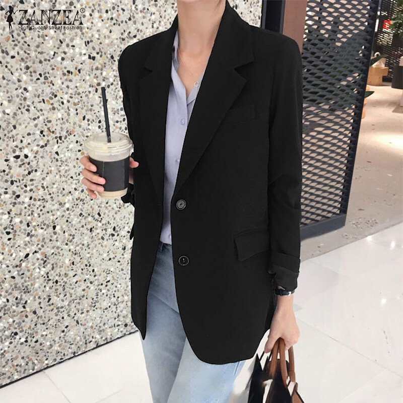 ZANZEA Korean Style Women Casual Long Sleeve Blazer Suits Collared Button Up Outerwear