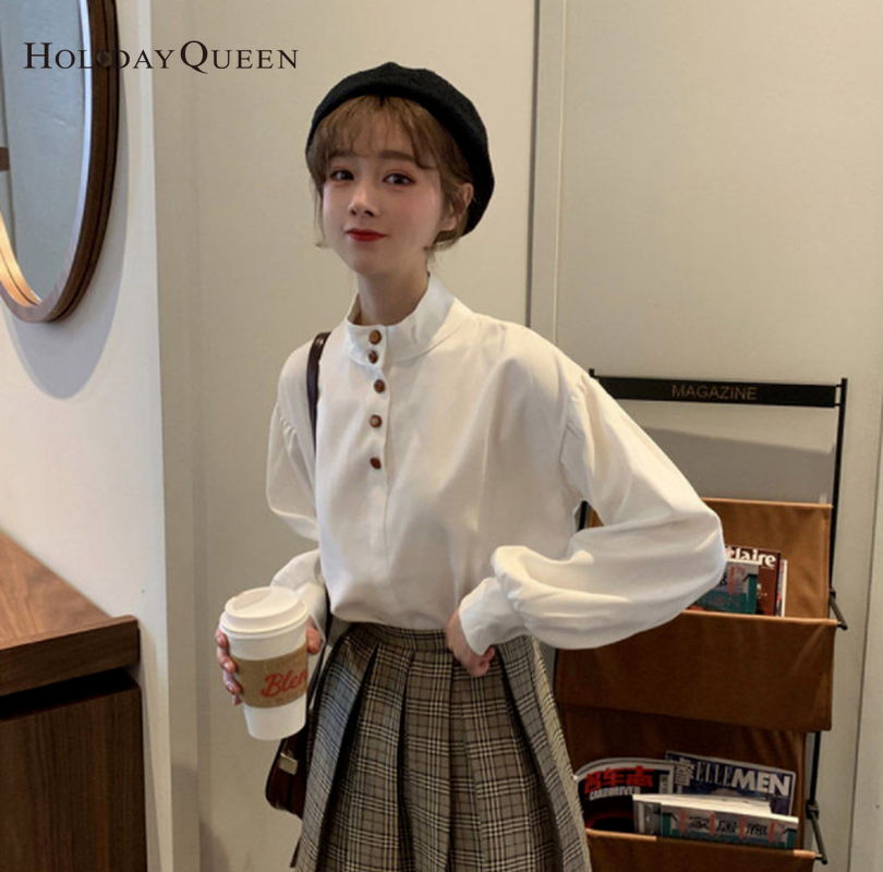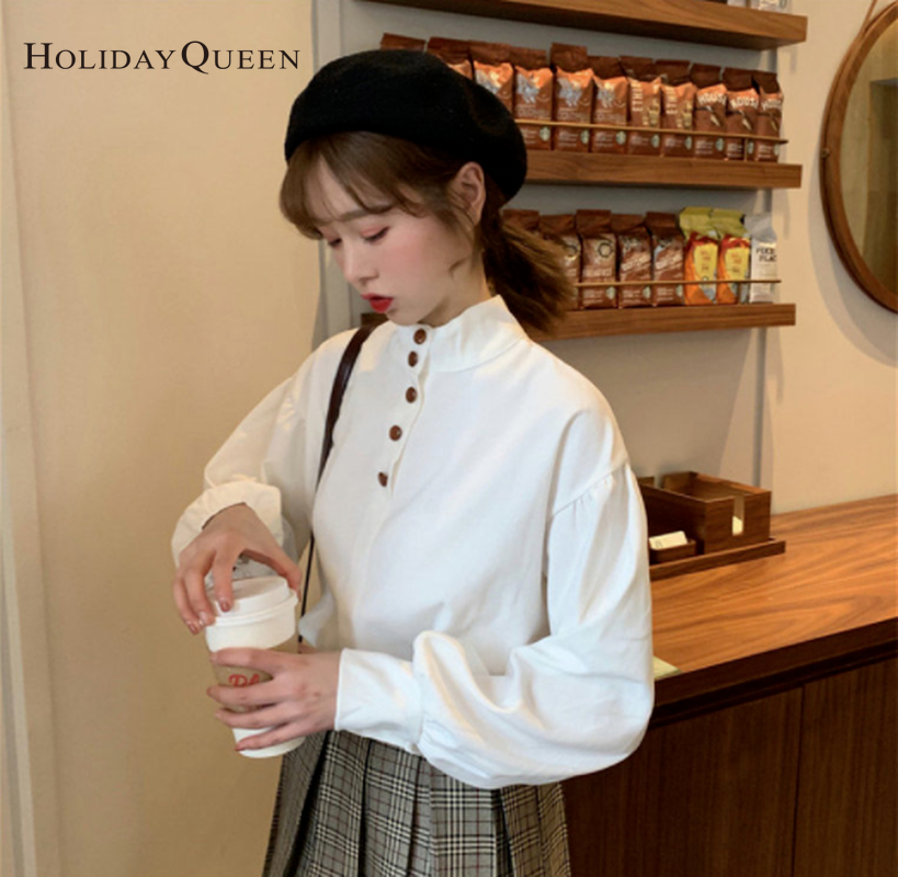 HolidayQueen 2021 Spring and Autumn Women's New Long-sleeved Loose Retro Korean Version of All-match Student Shirt Bottoming Shirt S M L XL Free Shipping HQ0571