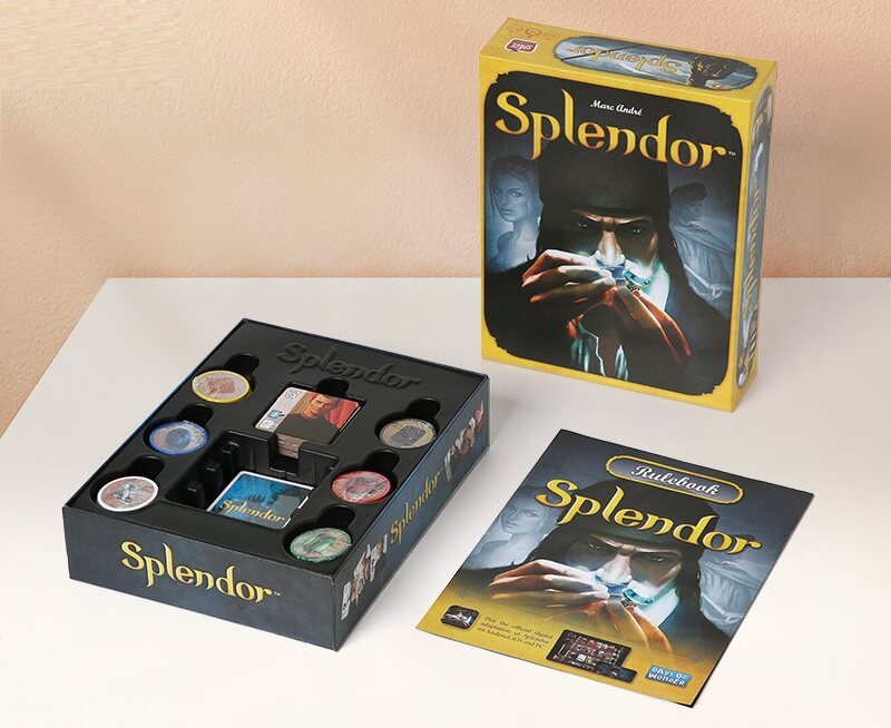 The European Renaissance opened up more ways of becoming rich than the continent had ever known before. Global trade routes became a reality. Nobles, once content with large castles and fur robes, now seek dark sapphires and glittering diamonds. Experience the riches of this era in Splendor, a fast, elegant, and intuitive game in which players vie for control of gem mines, trade routes, and storefronts to master the gem trade and attract the attention of nobles. Become the most influential and rich merchant at the jewelry market by optimizing your trading strategy. In this competitive world your strategy must be flawless if you intend to win, by collecting the most prestige points!