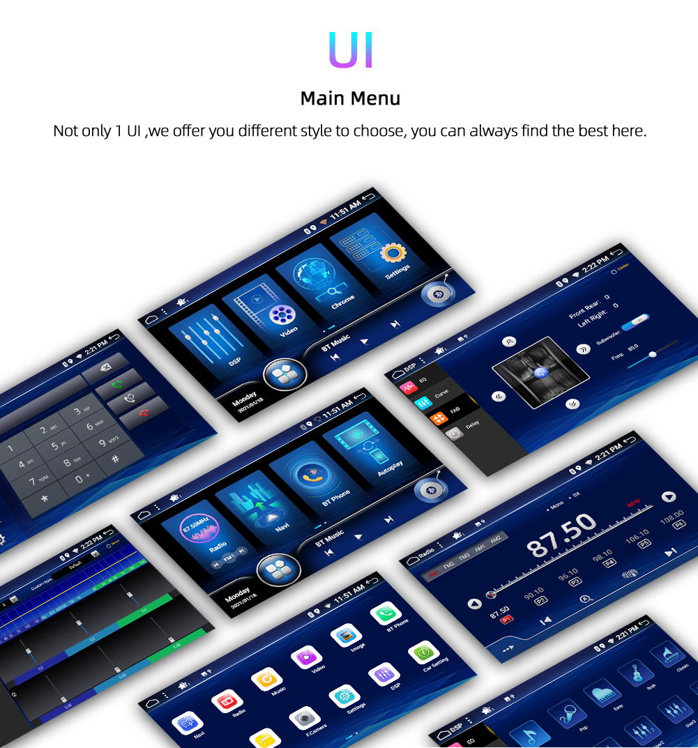 • 9:Support RDS.FM Frequency: 87.5-108MH AM frequency: 522-1710KHZ