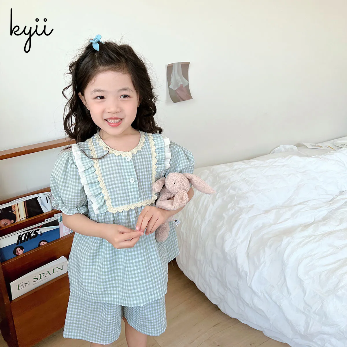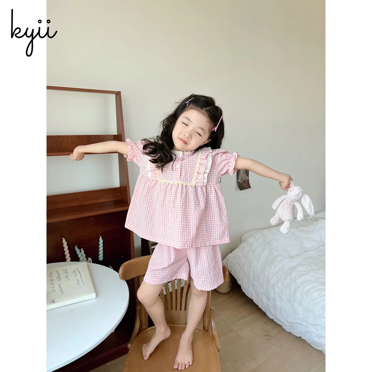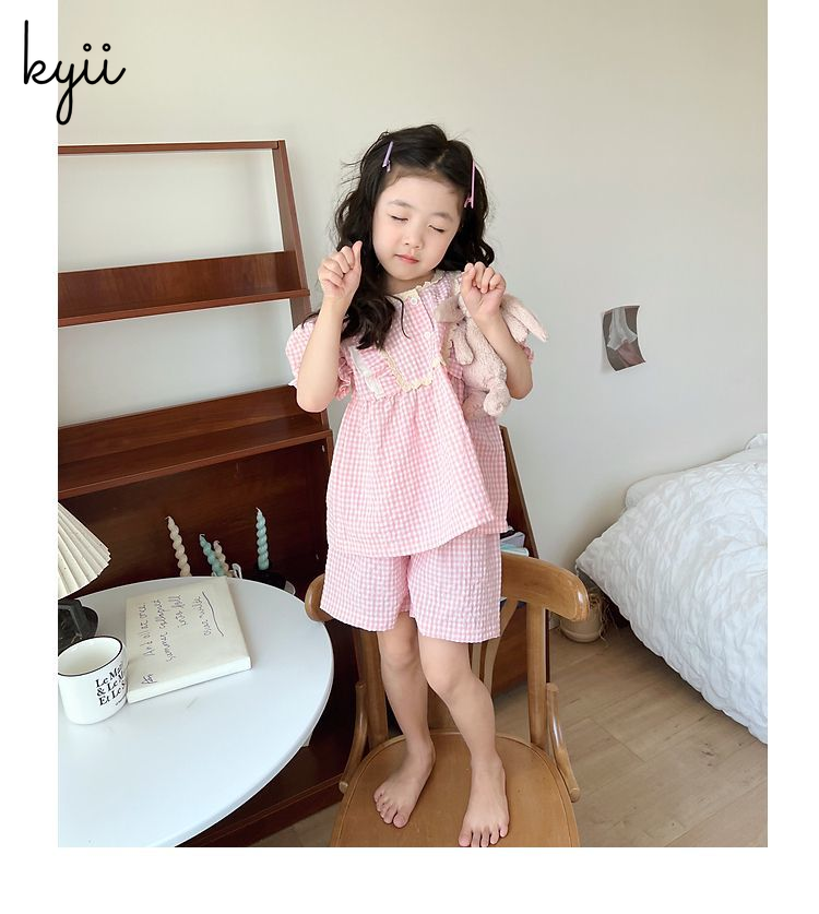 KYII Girls pajamas summer Korean short sleeve two pieces Set ky22064