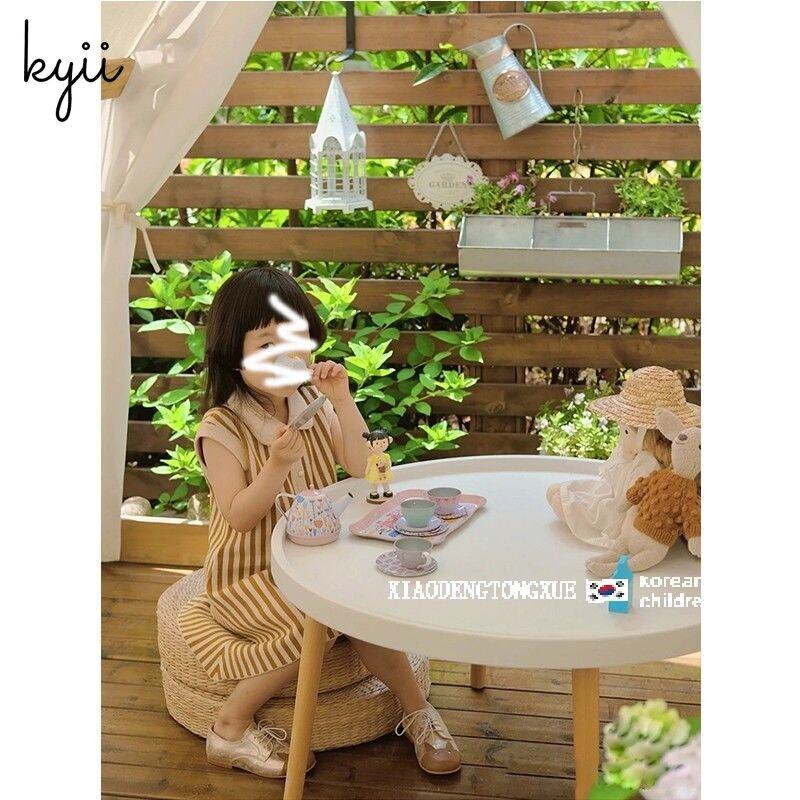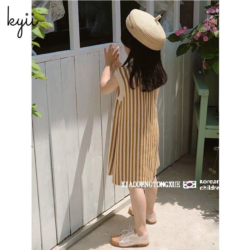 KYII Children summer girls Retro plain sleeveless Dress kyii0107