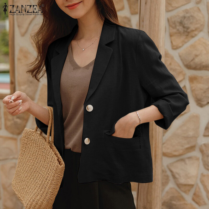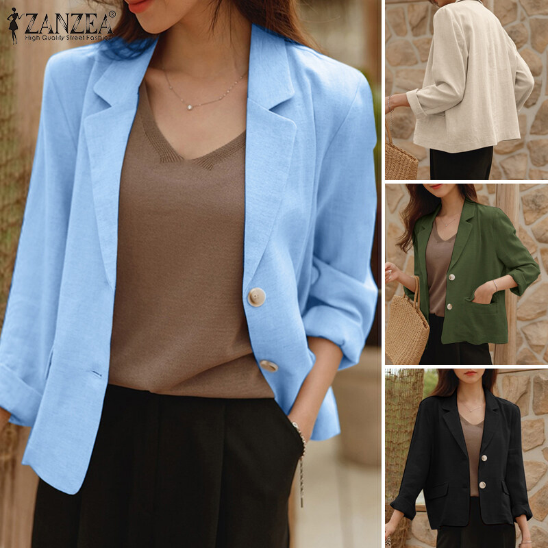 ZANZEA Korean Style Women Cotton Linen Casual Loose Blazer Suit Fashion Vintage Outwear Tops #10