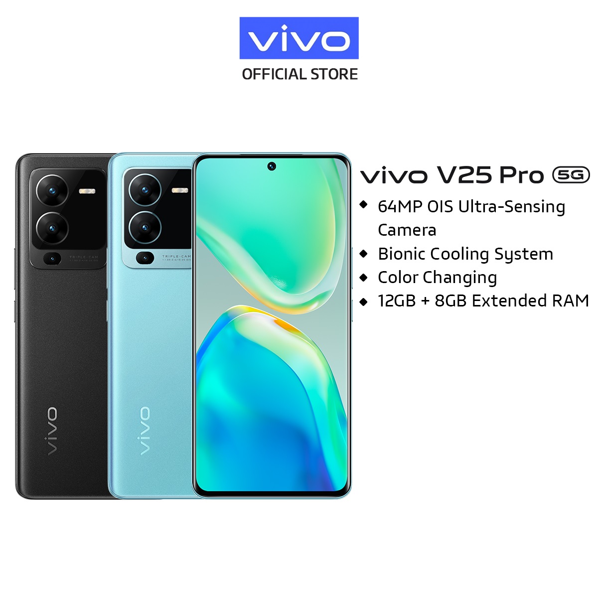 vivo V25 Pro 5G [12GB+8GB/256GB] 66W Flash Charger +4830mAh | 64MP OIS Ultra Sensing Camera | Color Charging Glass