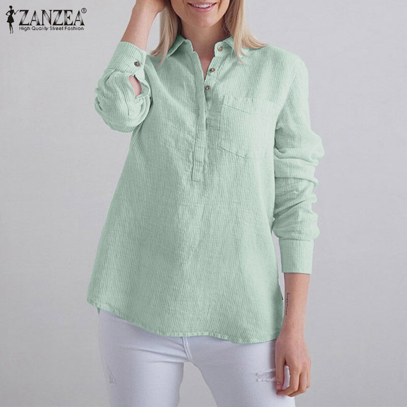 ZANZEA Women Striped Collared Long Sleeve T-Shirts Blouse Casual Work Shirt Loose Tops #15