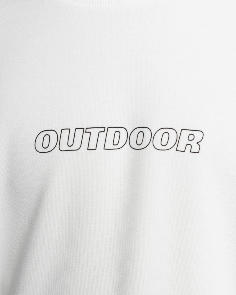 Regular Solid Coloured Long Sleeve Sweatshirt with Round Neck. Comes with Outdoor Slogan text in outline at the front. Made of cotton.