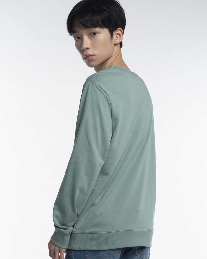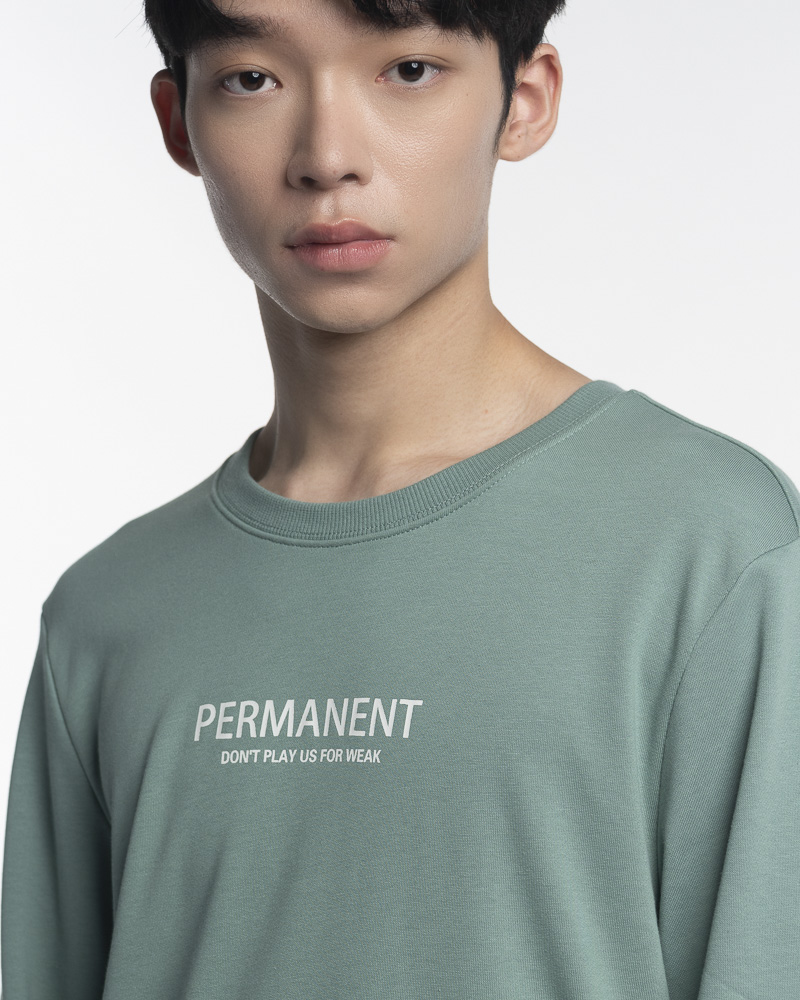 Regular Solid Coloured Long Sleeve Sweatshirt with Round Neck. Comes with Permanent Slogan at the front. Made of cotton.