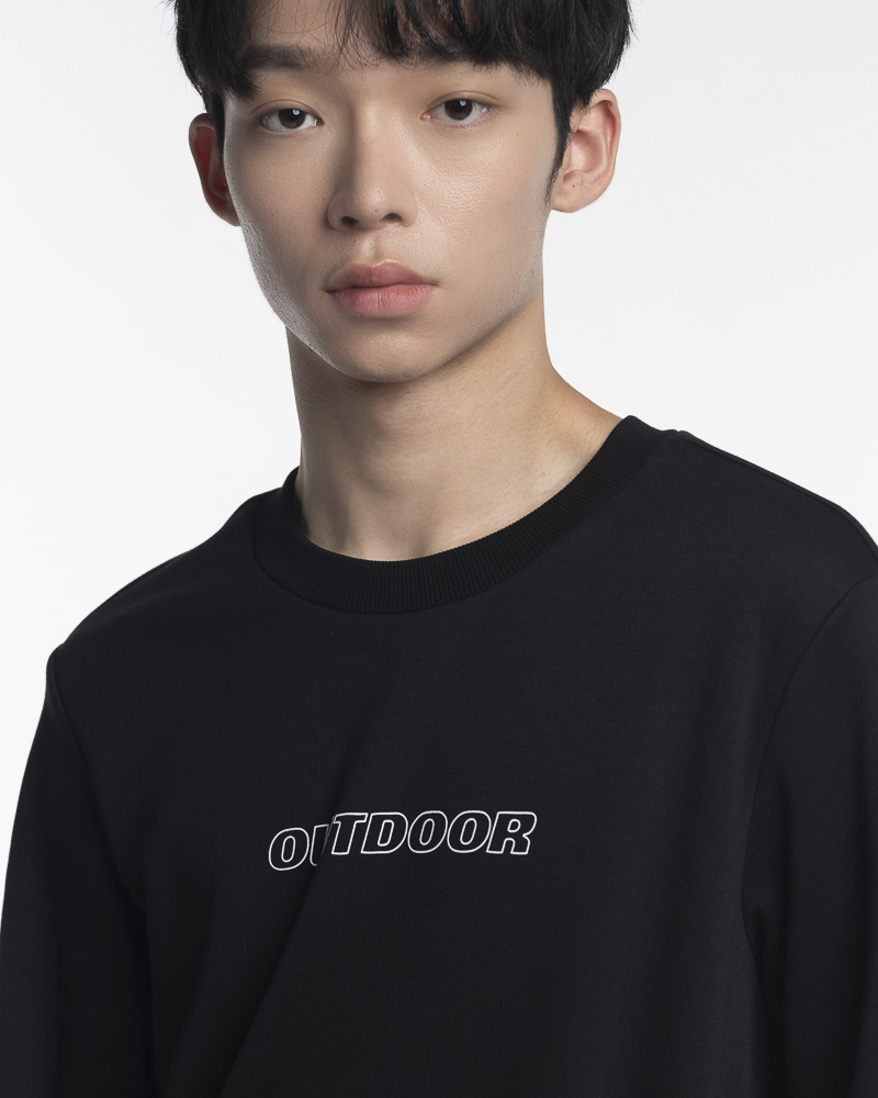 Regular Solid Coloured Long Sleeve Sweatshirt with Round Neck. Comes with Outdoor Slogan text in outline at the front. Made of cotton.