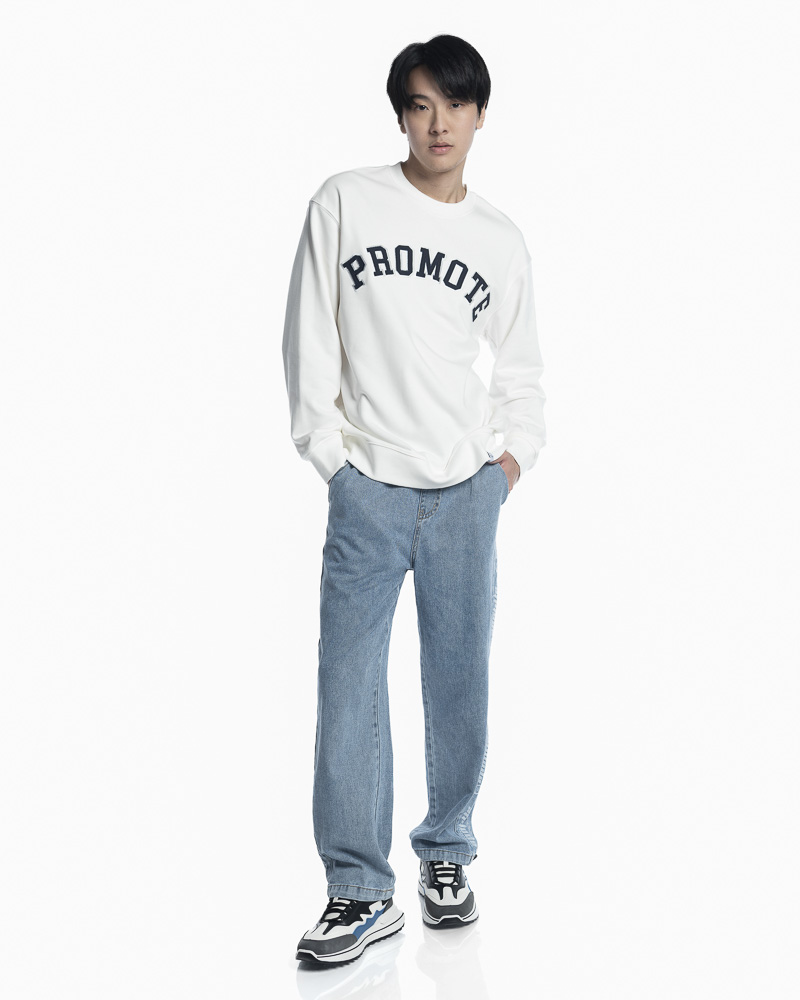 Regular Solid Colour Long Sleeve Sweatshirt with Round Neck. Comes with "Promote" Slogan Embroidery Patch at the front.