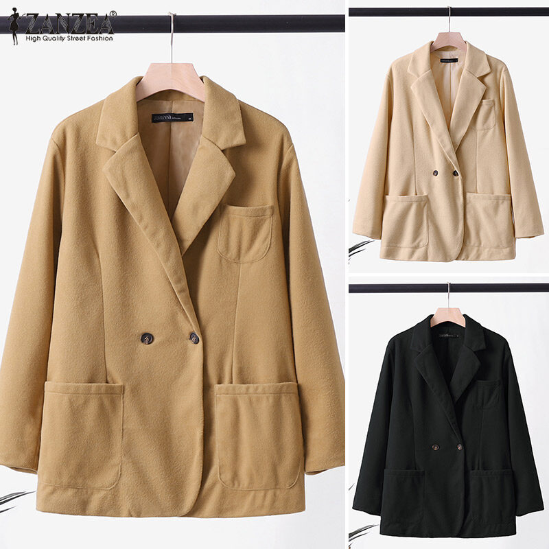 [Clearance Sale]ZANZEA Womens Business Long Sleeve Buttons Up Coat Formal Opent Front Jacket Plain Blazer #3 CLE