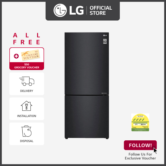 [Bulky] LG GB-B4059MT 2 Doors Inverter Bottom Freezer Refrigerator, 408L, Matt Black + Free Delivery + Free Installation + Free Disposal + Free $50 Grocery voucher