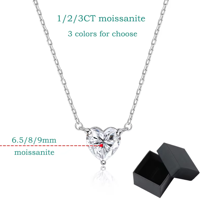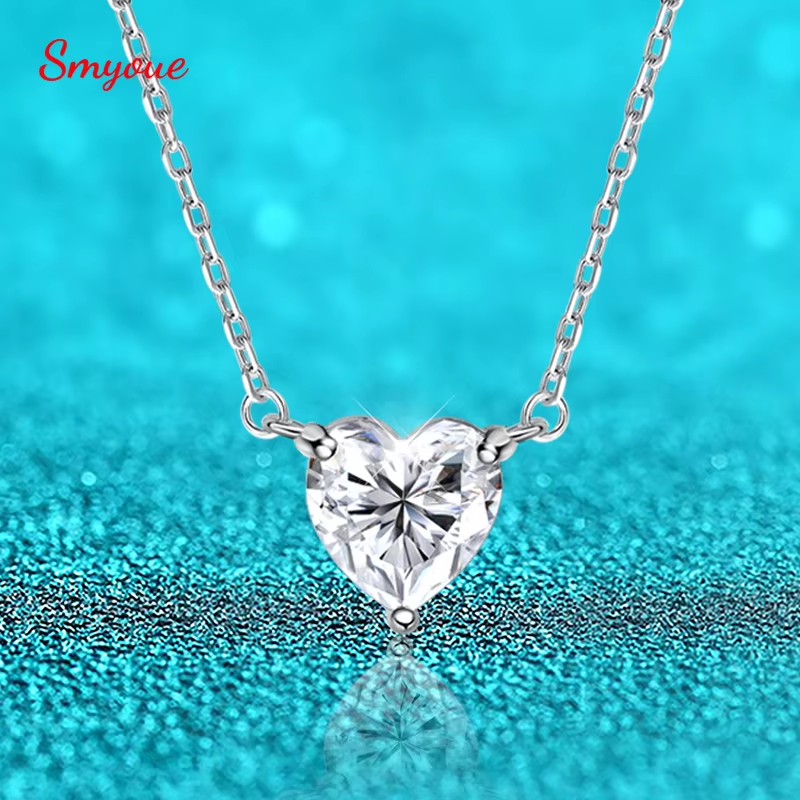 Smyoue 1CT 2CT 3CT Heart Cut Certified Moissanite Necklace for Women 18k Gold Plated Jewelry Sterling Silver S925 Pendant GRA