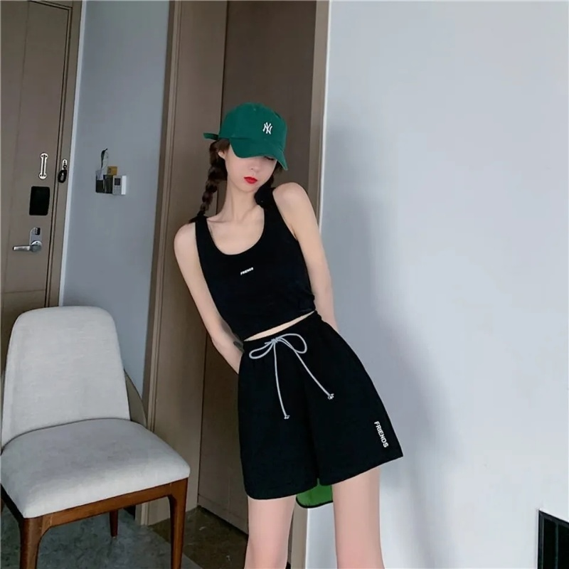 HolidayQueen Summer New Fashion Leisure Yoga Fitness Running Sportswear Suit Tide Brand Vest Shorts Two-piece Female Free Shipping HQP0303