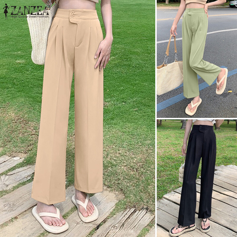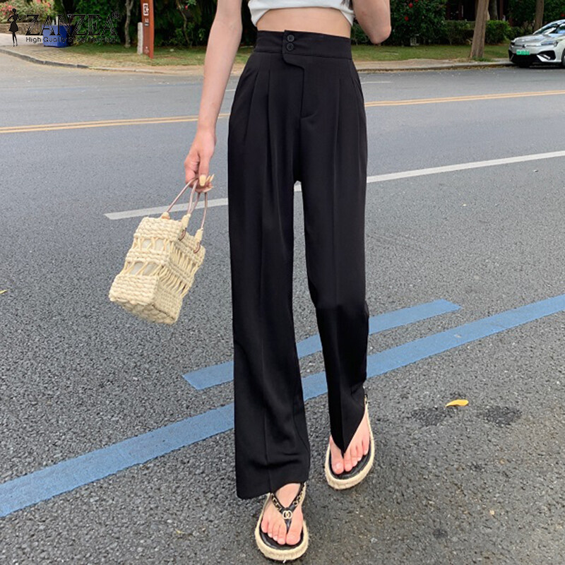 ZANZEA Korean Style Women High Waist Solid Casual Outing Loose Long Suit Pants Trousers
