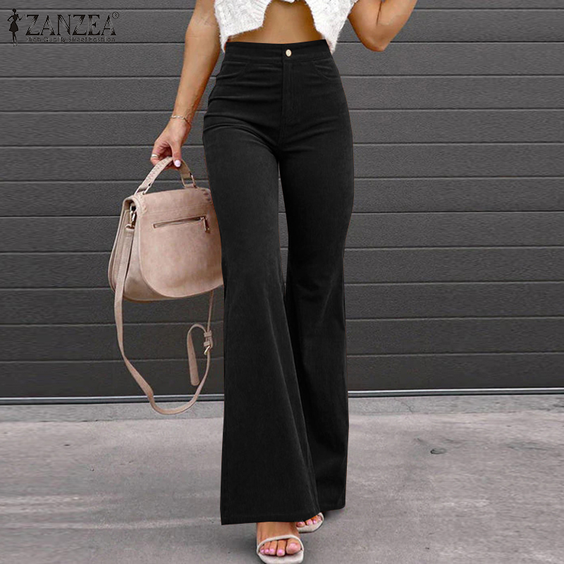 ZANZEA Women Formal Office Corduroy Flare Pants Business Leisure High Waist Solid Trousers #15