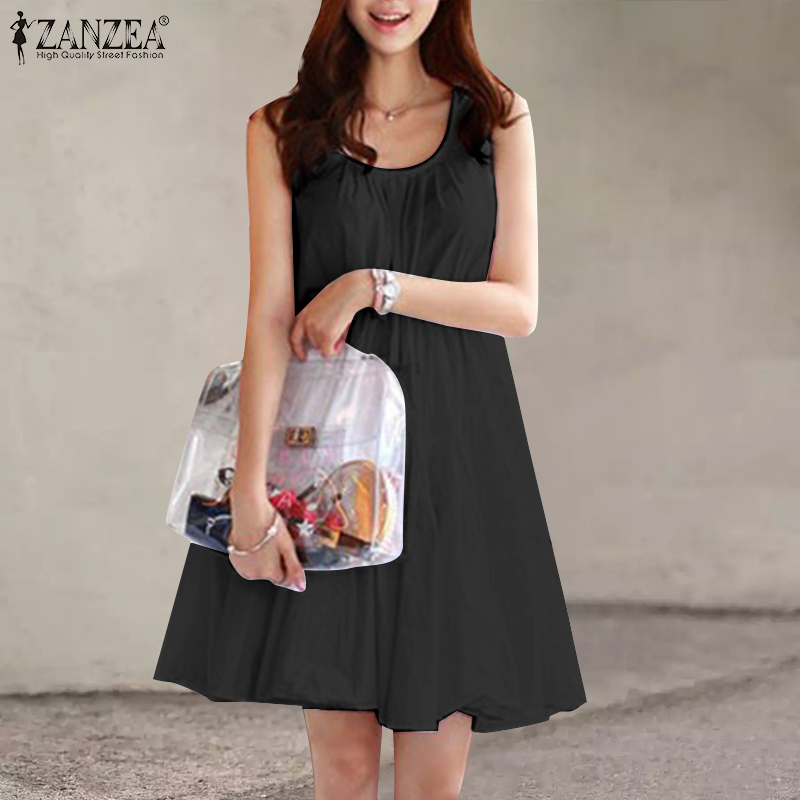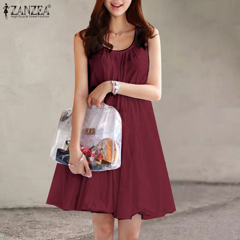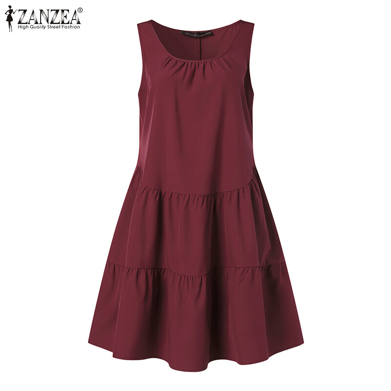 ZANZEA Korean Style Women Sleeveless Tiered Midi Dress Beach Round Neck A-Line Sundress #10