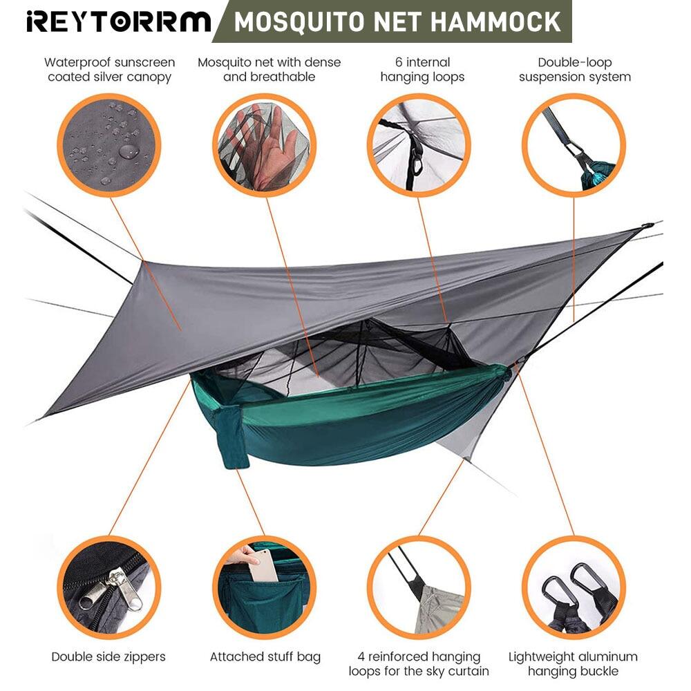 260X140cm Outdoor Double Camping Hammock With Mosquito Net And Rain Fly Tarp Lightweight Parachute Hammocks For Travel Hiking