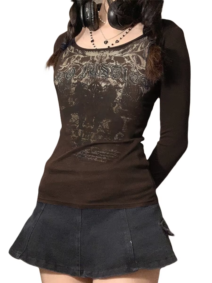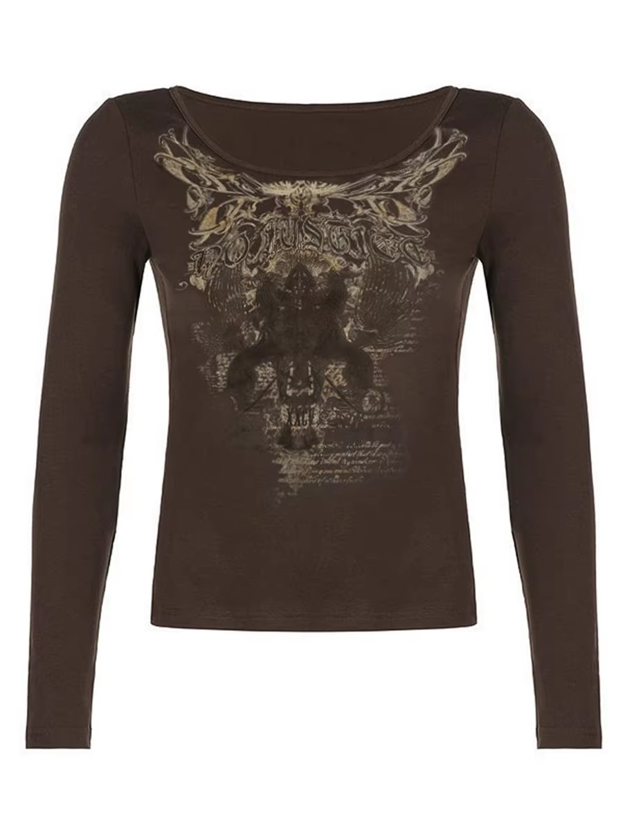 Women Lace Tops, Long Sleeve Scoop Neck Solid Color Casual Party Street Fall Spring Brown Tops